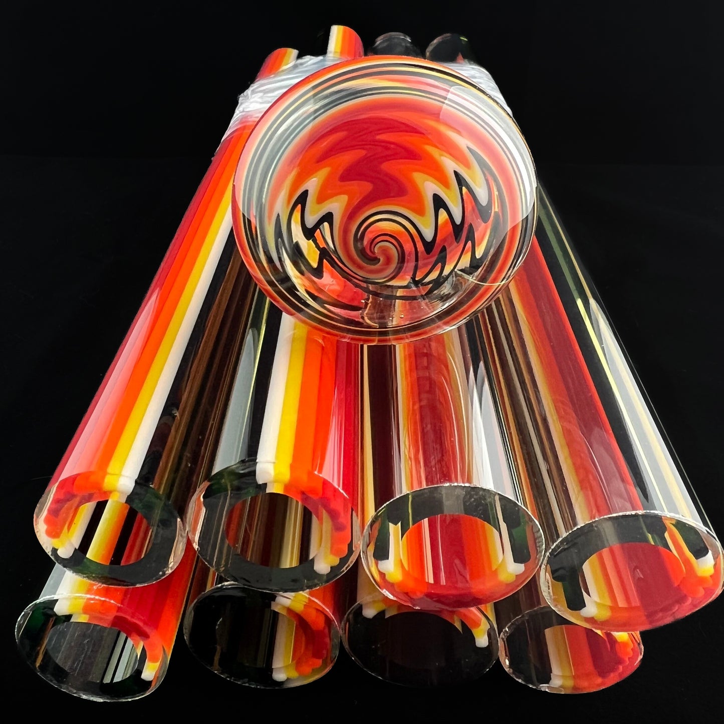 Our tubing is crafted using the vac-stack method with high-quality American-made borosilicate color and durable German clear glass.